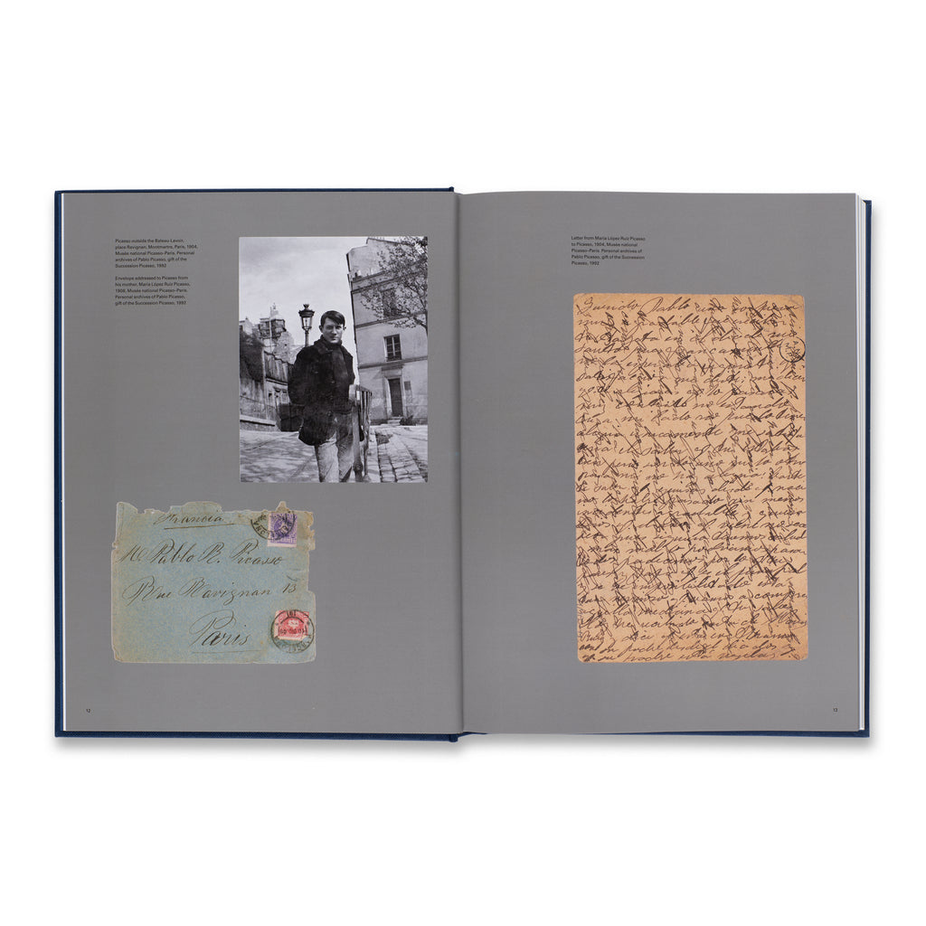 The second volume, edited by Cohen-Solal, reproduces historical material and ephemera that contextualize the exhibited works, including sketches, printed matter, letters, and installation, studio, and personal photography. Divided into four sections—“The Picasso Paradox,” “The Triple Stigma,” “A Multi-Resource Strategist,” and “Picasso Our Contemporary”—it also contains thirteen illustrated essays and conversations that explore the important new perspectives prompted by the exhibition; several essays are published in English for the first time, following a French catalogue on the subject (Librairie Arthème Fayard, 2021). Among the featured texts by the curators, Picasso experts, social scientists, and intellectuals at large are “A Group of Saltimbanques and the Ordeals of the Wars” by Cohen-Solal; “When Chicago Met Picasso” by Silvia Beltrametti; “Smuggling Identities: Picasso at the Borders of Catalonia” by Peter Sahlins; and “Guernica: An Odyssey in Time and Space” by Jeremy Adelman.