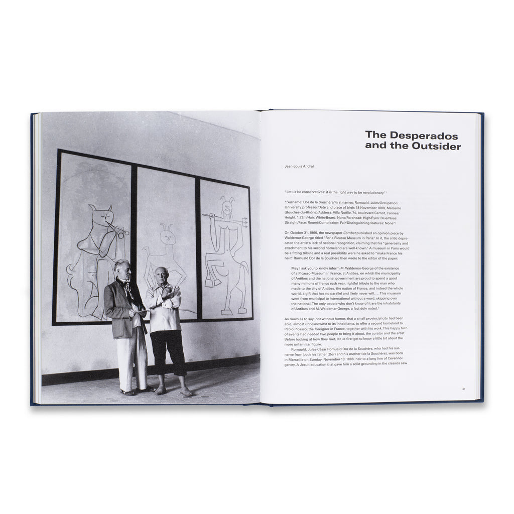 The first volume illustrates the more than eighty-five artworks in the exhibition with plates and installation photographs, organized chronologically into seven sections: “Prelude,” “1900–1906: ‘Anarchist under Surveillance’ in the Labyrinth of Paris,” “1906–1919: Leader of the Avant-Garde,” “1919–1939: Mercurial Artist under Siege,” “1940–1944: ‘France for the French!,’” “1944–1955: The Communist Party as a ‘Homeland,’” and “1955–1973: Head of a Mediterranean Tribe in His Kingdom.” In addition to an an introduction by Larry Gagosian and a text by Paloma Picasso, it includes a conversation between Cohen-Solal; Cécile Debray, director of Musée national Picasso–Paris; and Constance Rivière, director of the Palais de la Porte Dorée. An homage to Claude Picasso (1947–2023), with a remembrance by Gagosian, concludes the book.
