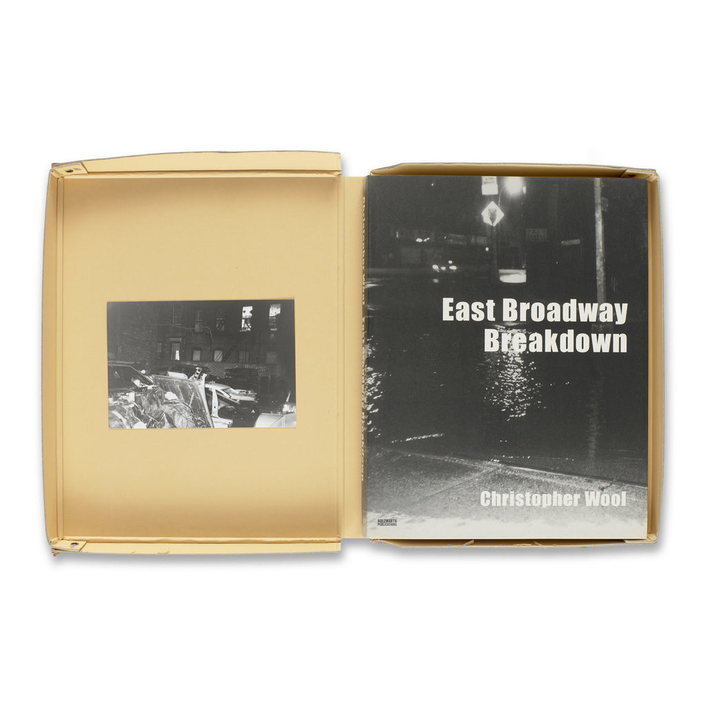 This artist’s book reproduces a series of black-and-white photographs Christopher Wool took on New York’s Lower East Side between 1994 and 1995. The series is named for the street on which Wool lived and worked and was shot at night using a 35mm camera. Recording the area’s dilapidated storefronts, ramshackle staircases, and litter-strewn sidewalks, the images confront the viewer with a set of consciously awkward formal arrangements, presenting a kind of visual entropy rooted in the urban environment. By applying extremes of contrast, Wool further obscures his subjects, pushing them toward abstraction in a way that resonates directly with his paintings.