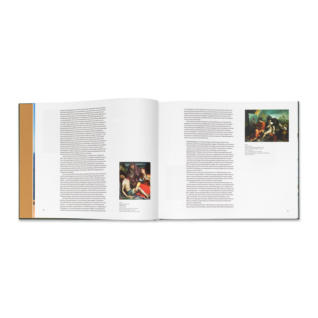 This book was published on the occasion of John Currin at Casa Malaparte, a one-night-only exhibition in July 2024 at Casa Malaparte, the famous cliffside house built on the Italian island of Capri by Curzio Malaparte (the pseudonym of Kurt Erich Suckert), a provocative writer, editor, and intellectual active in the Italian literary and artistic avant-garde. The exhibition featured paintings of female figures, domestic interiors, and vintage tableware, as well as two portraits on paper. As ever, Currin employs classical painting techniques, introducing juxtapositions and exaggerations that echo the distorting effects of social convention, power, and bodily decay, holding the beautiful and the grotesque in perfect balance.