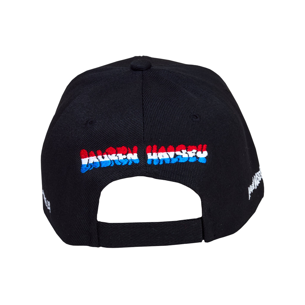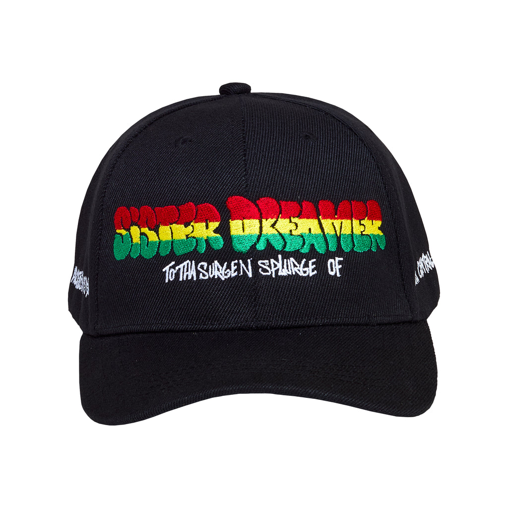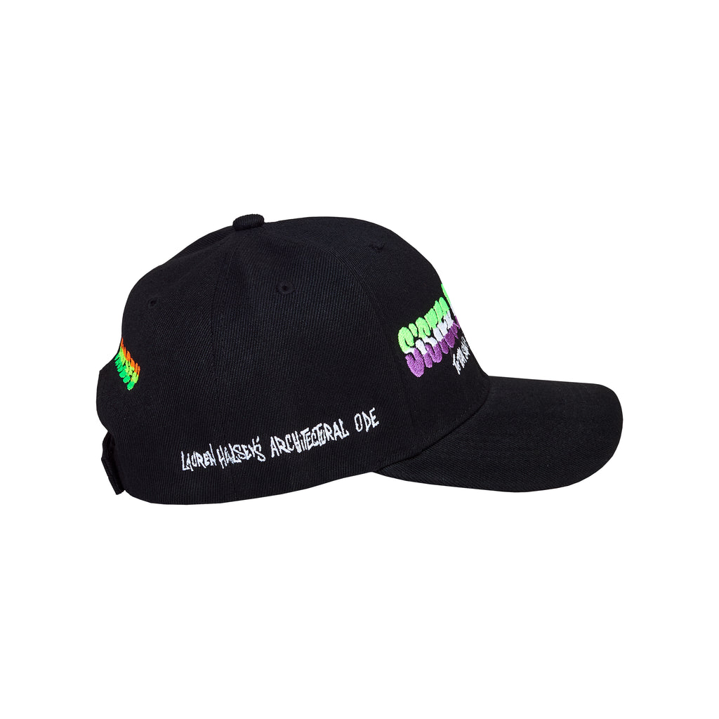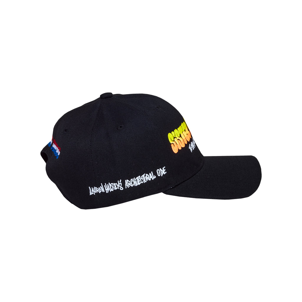 Designed by Lauren Halsey, the sister dreamer embroidered hat anticipates the March 2026 opening of her sculpture park, sister dreamer, lauren halsey’s architectural ode to tha surge n splurge of south central los angeles, featuring gardens and extensive public programming by the artist’s nonprofit, Summaeverythang Community Center. Available in three colorways, this limited line of contemporary headwear pays homage to the iconography and visual language found in Halsey’s community.