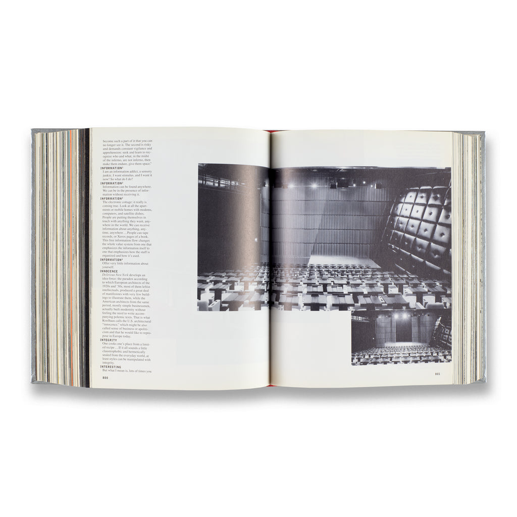 Signed by Rem Koolhaas, this first-edition copy of S,M,L,XL collects two decades of writing by the architect and projects by his firm, Office for Metropolitan Architecture (OMA). Edited by Jennifer Sigler, the innovative book is a tour de force of graphic design by Bruce Mau that complements its visionary presentation of architectural concepts photographed by Hans Werlemann. Its title indicates its organizational framework: “Small” and “Medium” sections focus on domestic and public-scaled projects, “Large” examines what Koolhaas called “the architecture of Bigness,” and “Extra Large” comments on issues of urban design. Accompanying these manifestos and projects is an imaginative dictionary of definitions and cultural commentary that runs throughout.
